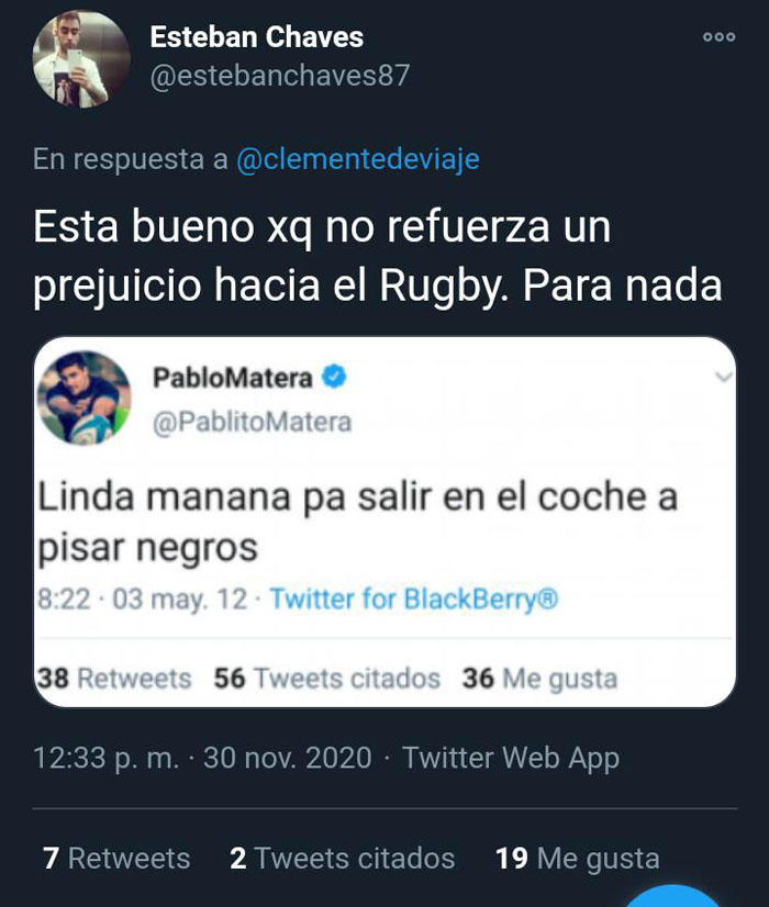 Tras un rudimentario pedido de disculpas de Los Pumas, en la voz cantante de su capitán, Pablo Matera, las redes se colmaron de viejos mensajes publicados en la cuenta verificada de Twitter del líder de este deporte a nivel nacional.