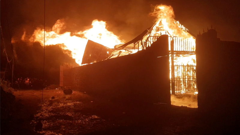 Mientras el resplandor rojo teñía el cielo nocturno y flujos de lava destruían viviendas, miles de residentes cargados con colchones y otras pertenencias, huyeron a pie, muchos de ellos hacia la frontera con Ruanda.