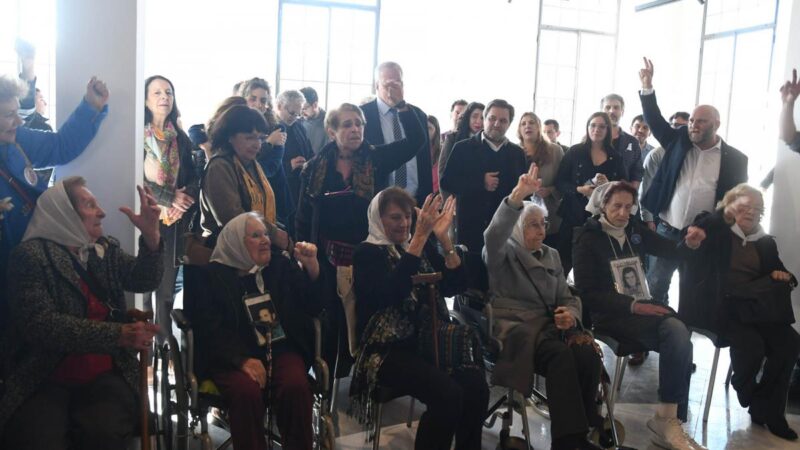 «Es muy emocionante dejar abierta la muestra permanente para que escuelas, maestros y jóvenes vengan a aprender, pensar, preguntar sobre lo que pasó y lo que hicimos con lo que pasó», dijo Jaime Perczyk, ministro de Educación, junto al secretario de Derechos Humanos, Horacio Pietragalla y las Madres Línea Fundadora, Taty Almeida, Nora Cortiñas, Clara Weinstein y Carmen Lareu.