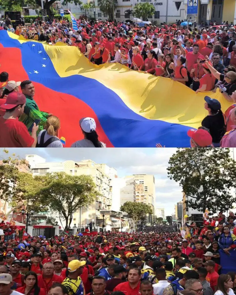 Mientras tanto, ciudadanos de Caracas y toda Venezuela llenaron diez avenidas de la ciudad capital para expresar su respaldo al líder bolivariano y a su gestión al frente del país, una nación estable y con una economía que avanza a paso firme pese a las más de 900 sanciones de EE.UU. y la UE.