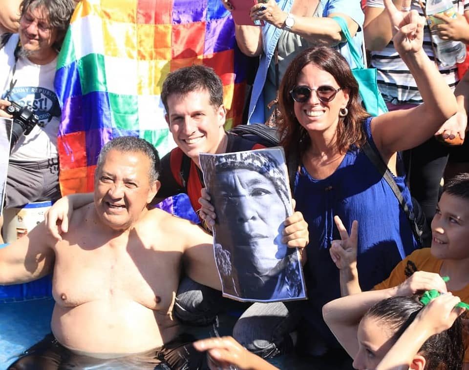 El «piletazo» fue en conmemoración a la emblemática obra social de Sala en la provincia de Jujuy (norte), donde al frente de la organización barrial Túpac Amarú, logró la construcción de 18 centros Polideportivos y la piscina más grande del norte del país para el disfrute de la población mas relegada de la región.