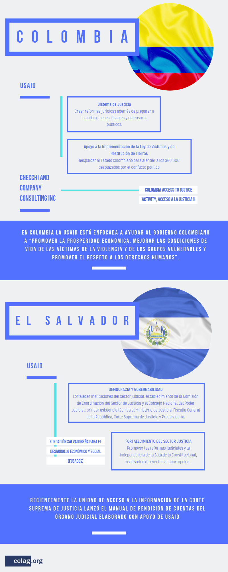Supuestamente, el objetivo de la asistencia judicial es “mejorar la democracia, la gobernanza y los Derechos Humanos”. La USAID es el ejemplo más concreto de estas metas. En el 2012 creó el “Centro de Excelencia en Democracia, Derechos Humanos y Gobernanza”[6] para desarrollar la cooperación técnica y proporcionar ayuda a las misiones que EE. UU. tiene sobre el terreno. El Centro cuenta con una división de “Gobernanza y Estado de derecho” cuyo propósito es “mejorar la rendición de cuentas, la transparencia y la capacidad de respuesta de las instituciones” promoviendo “marcos legales y regulatorios que mejoren el orden y la seguridad, la legitimidad, los controles y los saldos, y la aplicación y el cumplimiento igualitarios de la ley”.[7] La intervención de esta división se hace a través de expertos internos que forman a líderes y académicos que ayudan en sus programas de capacitación y “buenas prácticas” proporcionados a los gobiernos y la sociedad civil.