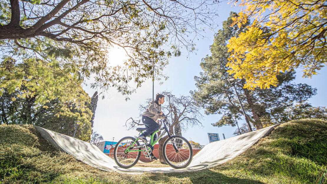 Otra posibilidad es ir a la pista del Parque Sarmiento, el emblemático pulmón verde de Córdoba, con sus 3.000 metros cuadrados y punto de encuentro para los fanáticos del BMX y skateboarding, en modalidades street y bowl. Está entre el Teatro Griego, el Rosedal y barrancas. Fue inaugurada en julio de 2013.