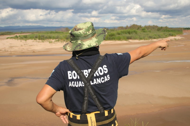 El cuerpo ladeado hacia un costado acompañaba a la ondulación del río. La espalda descubierta, ancha y blanca se mecía al sol entre la palizada. El bombero voluntario Gabriel Amador, de 21 años, no se sentía realmente contento, pero esa fue la primera palabra que vino a su mente cuando vio al cuerpo flotar desde la barranca de enfrente, en la ciudad de Aguas Blancas, Argentina. Allí todo era inmenso. El enorme cielo sin nubes, el monte que continuaba más allá de sus ojos, el caudal vibrante del Bermejo. Era su primera búsqueda como rescatista y había dado con el objetivo tras horas de caminata en medio de un bosque frondoso y húmedo. Llamó con un grito a su padre, el cabo Bernardino Amador ─bombero hace diecisiete años─ que se encontraba más adelante. «Eso es un cuerpo, papá», le dijo firme, con el brazo levantado en dirección a un punto blanco que sobresalía del agua marrón. Bernardino levantó la vista, divisó el horizonte apenas unos segundos y puso una mano sobre el hombro de su hijo. «Sí, y quiero que lo traigas», respondió.
